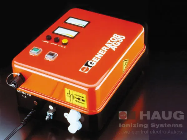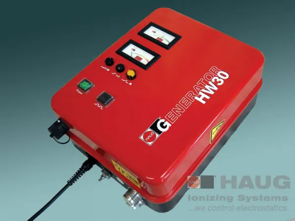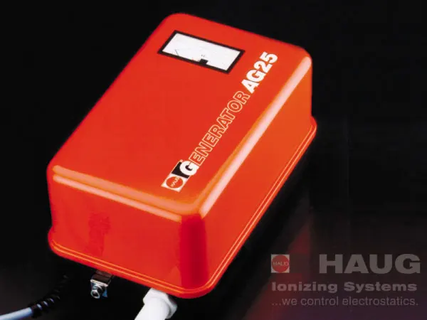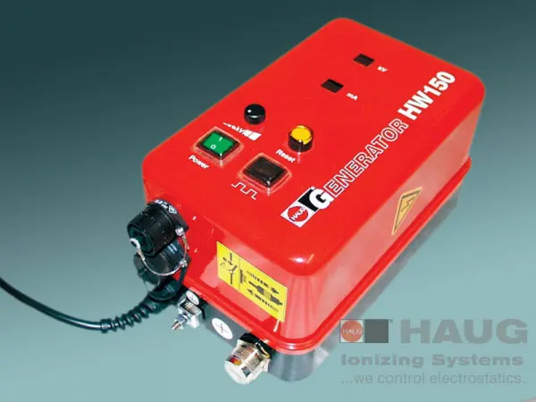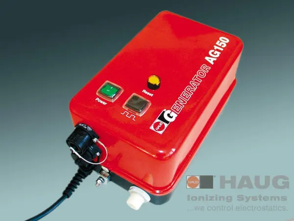 Materiais de diferente constituição química que estão em contato ao se separarem ou atritarem sofrem um desproporcionamento de cargas elétricas, o que gera um campo elétrico na superfície dos mesmos. Se o material for isolante este campo permanece por muito tempo, causando forças de atração indesejadas, choques elétricos, atração de poeira e outros fenômenos que comprometem o processo produtivo. Estas cargas podem ser eliminadas por barras aterradas com pontas (barras passivas), ou por barras que emitem íons no ar tornando-o condutivo e assim permitirem a migração das cargas para um terra. Barras com fluxo de ar aumentam sua eficiência com relação à distância do objeto. A HAUG dispõe de uma grande gama de fontes de alta tensão e dispositivos que permite a solução do problema na grande diversidade de processos produtivos existentes.