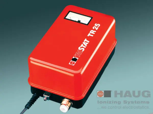 Os geradores de carga HAUG TRISTAT TR 15 / TR 25 são geradores de alta tensão desenvolvidos especificamente para a alimentação de carregadores Triodos HAUG (tipos ALT, ALM e ANT). O triodo de carregamento é colocado a uma distância de aprox. 10-20 mm acima do material a ser carregado, em frente ao contra-eletrodo. O contra-eletrodo aterrado deve estar em contato com o material a ser carregado.